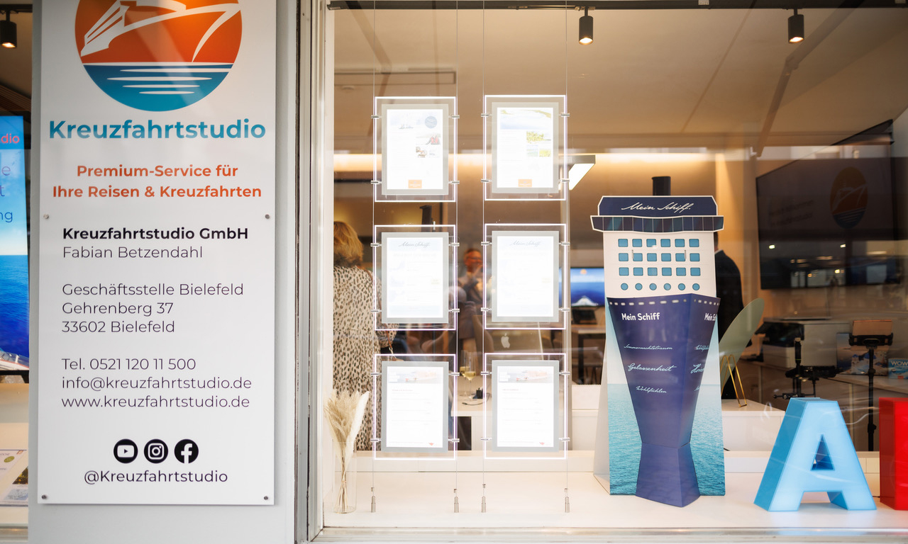 Willkommen bei Ihrem spezialisierten Reisebüro für Kreuzfahrten im Herzen der Altstadt von Bielefeld! Unsere Leidenschaft sind Kreuzfahrten, und das teilen wir gerne mit Ihnen. Mit über 1.800 Tagen persönlicher Kreuzfahrterfahrung bringt unser Team fundiertes Wissen und Insider-Tipps mit, um Ihnen die beste Reiseberatung zu bieten. Wir beraten eben aus eigener Erfahrung.